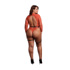 Glanzende Open-Back Bodysuit met PU Leren Garters – Plus Size – Rood/Goud Glitter